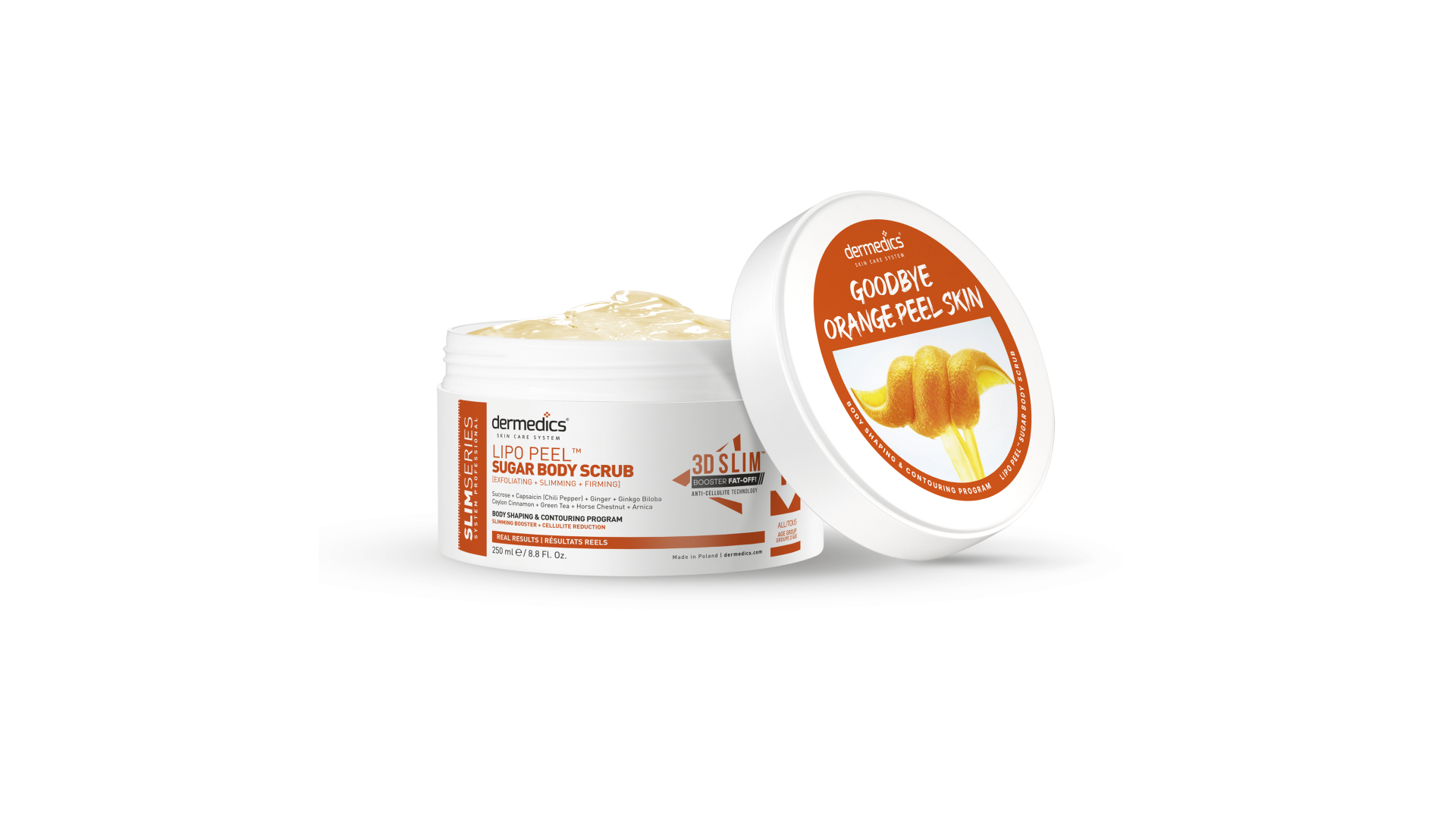 With powerful components like sweet sucrose, capsaicin (chili pepper), ginger, gingko biloba, Ceylon cinnamon, green tea, horse chestnut, and arnica, LIPO PEEL™ works to exfoliate and firm the skin while promoting slimming activity.